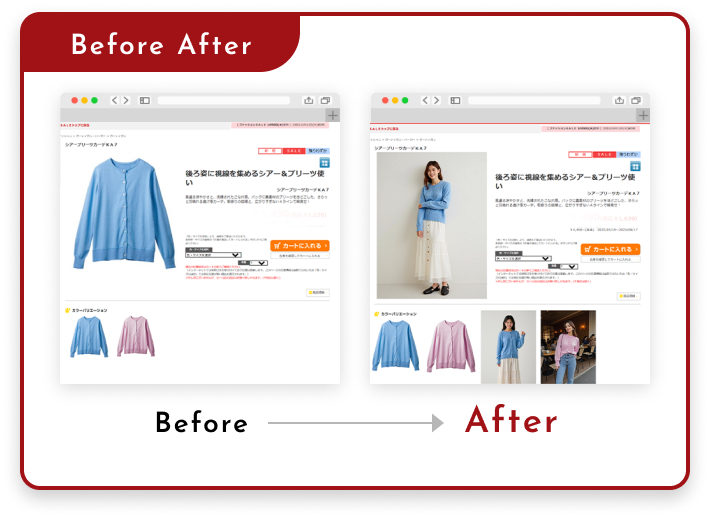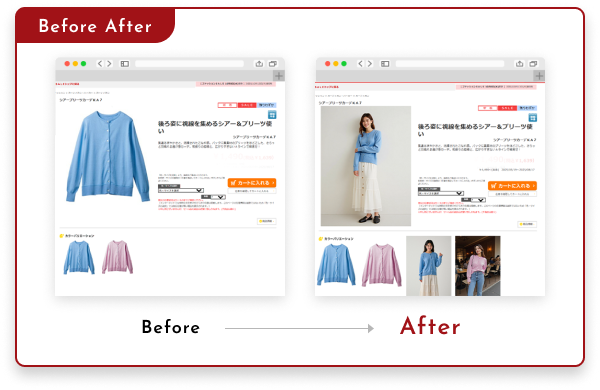 売上が伸び悩んでいた商品に対し、着用画像を刷新することで