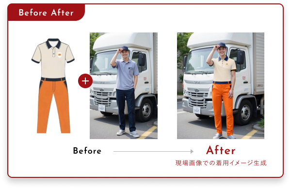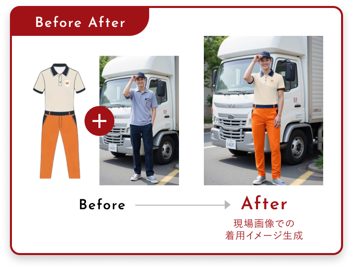 実際の作業現場でスタッフが着用している姿をわかりやすく可視化することで、