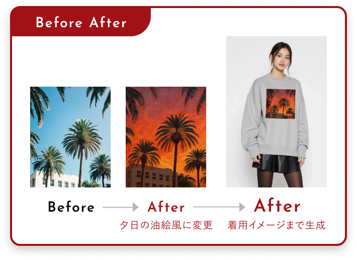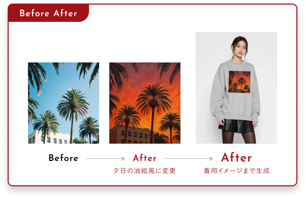 既存のイラストやデザインを、テキストや画像で変更することができます。